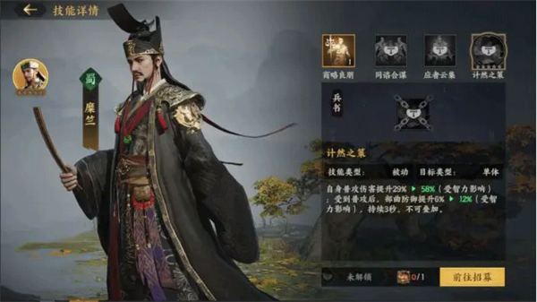 应用场景:概率规避普攻的特性,在战场中比较克制依赖普攻的骑兵部队(如马超、赵云等),免疫普攻伤害也有效保障自身部曲的生存。