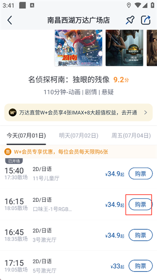 2、独家观影特权:会员享IMAX/杜比场次优先购票权及特殊影厅专属折扣优惠。
