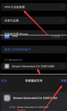 确认证书已安装并信任。重启Stream和目标App。