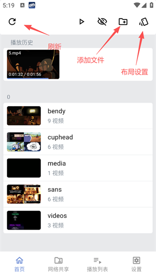当然你也可以手动添加手机文件夹目录,还支持显示播放器记录、页面布局设置。