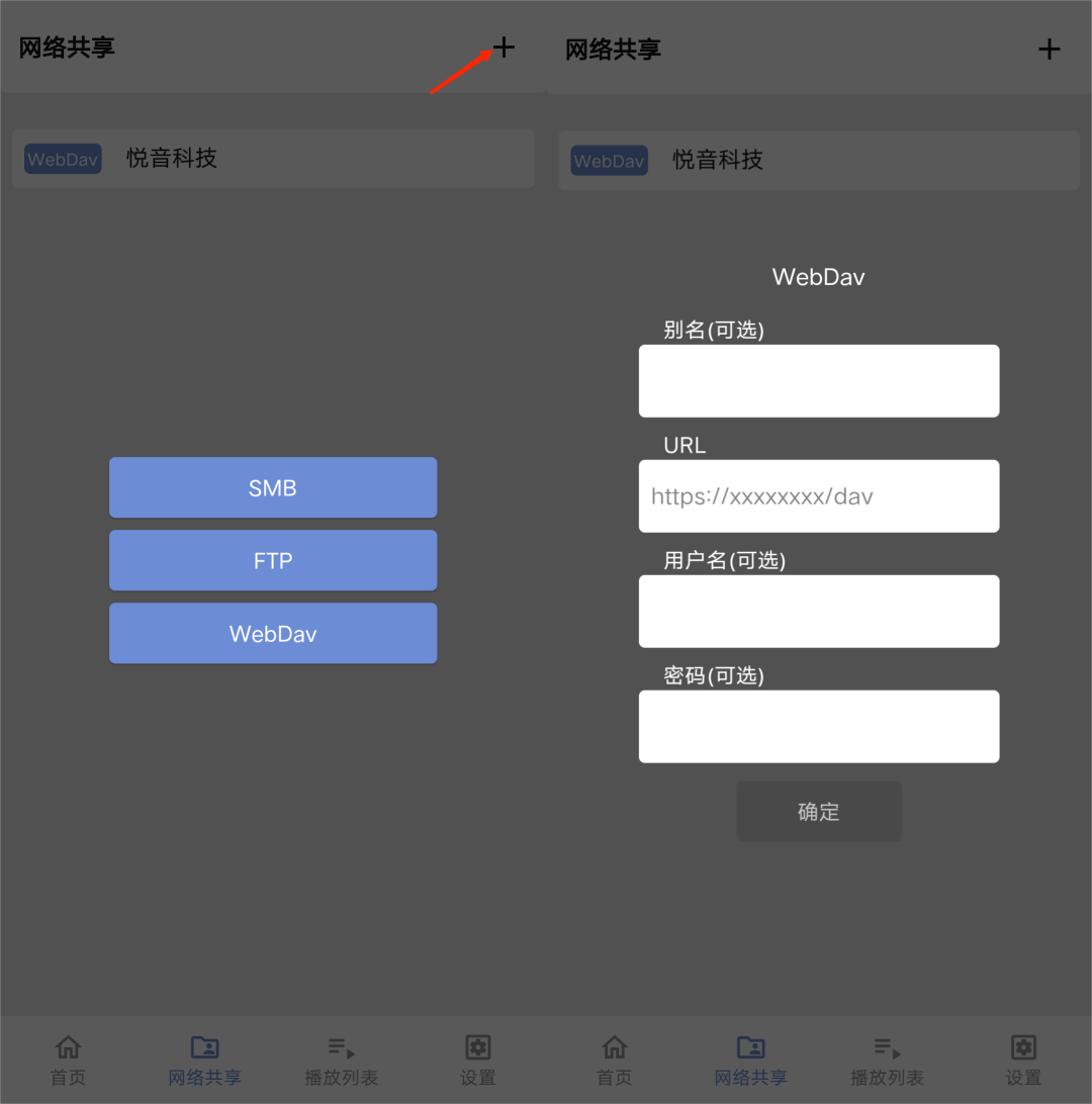 3、Reex播放器App同时也支持网络共享播放,支持 SMB、FTP、WebDav三种协议,你可以观看在家里局域网电脑共享或者NAS服务器共享的影片及 相册 视频。