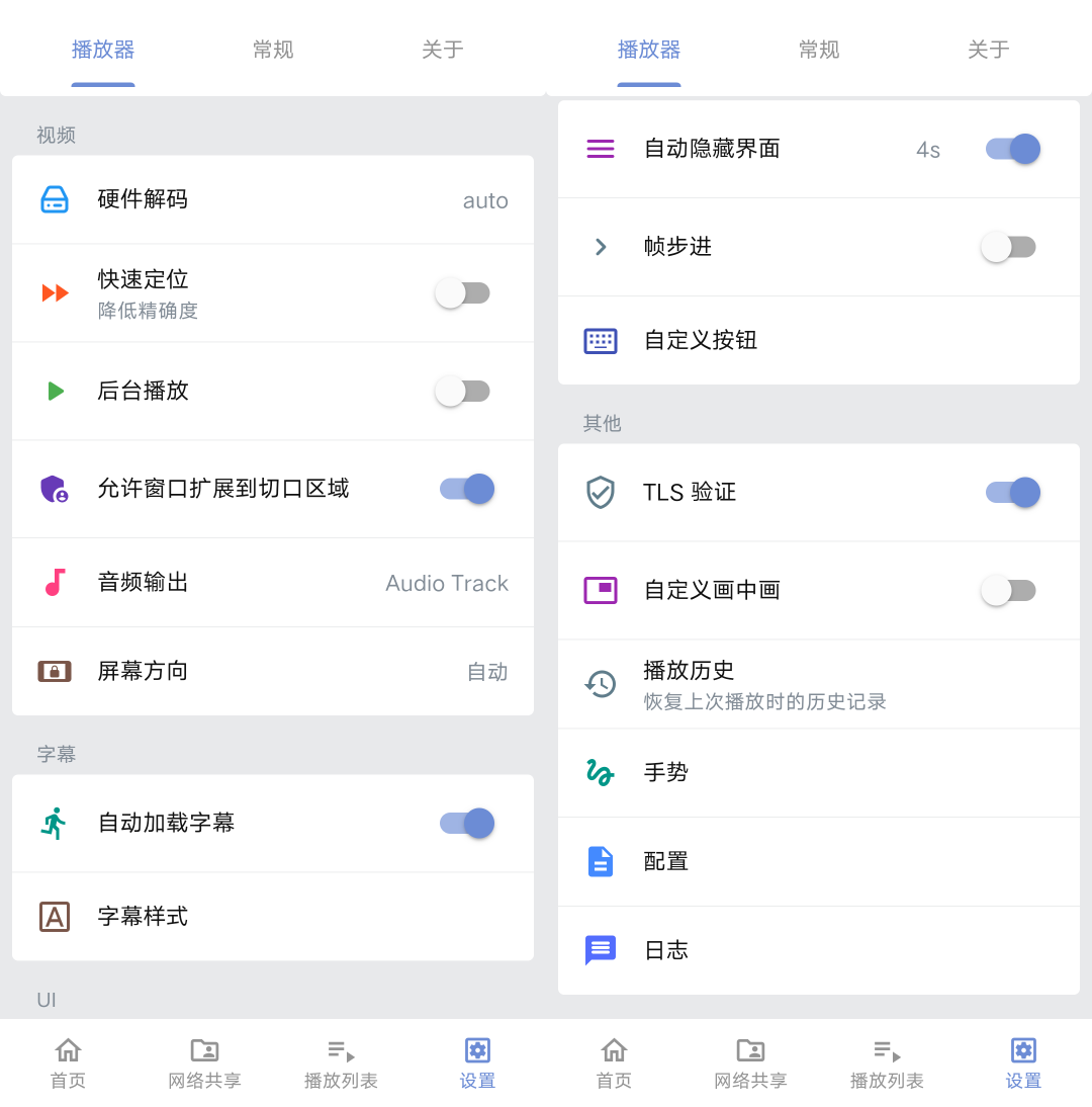 5、功能方面,基本上具备了播放器应有的功能,包括支持硬件解码设置、快速定位、后台播放、窗口扩展区域、屏幕方向、音频输出设置、字幕样式等。