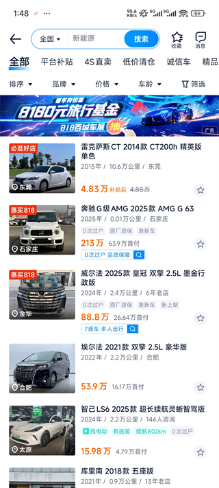 2、智能筛选系统,可按品牌、价格、里程等20+维度精准筛选,快速找到心仪车型。
