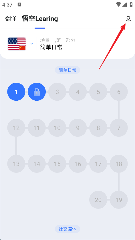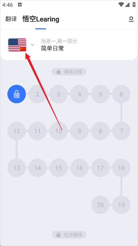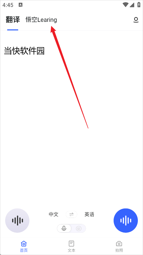 1、进入软件后首先点击上方的悟空Learing