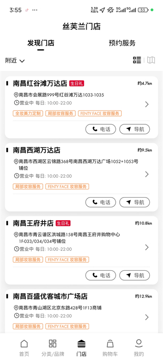 4、门店预约系统支持线上预约免费化妆服务、皮肤检测等6大类到店体验项目。