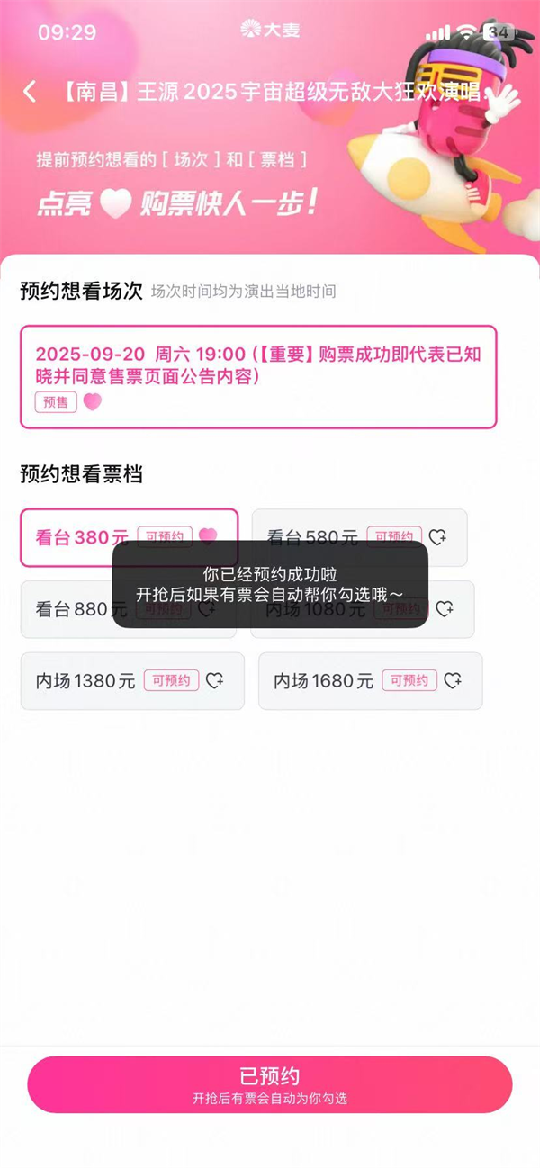 4、预约成功后,开抢后如果有票会自动帮你勾选哦