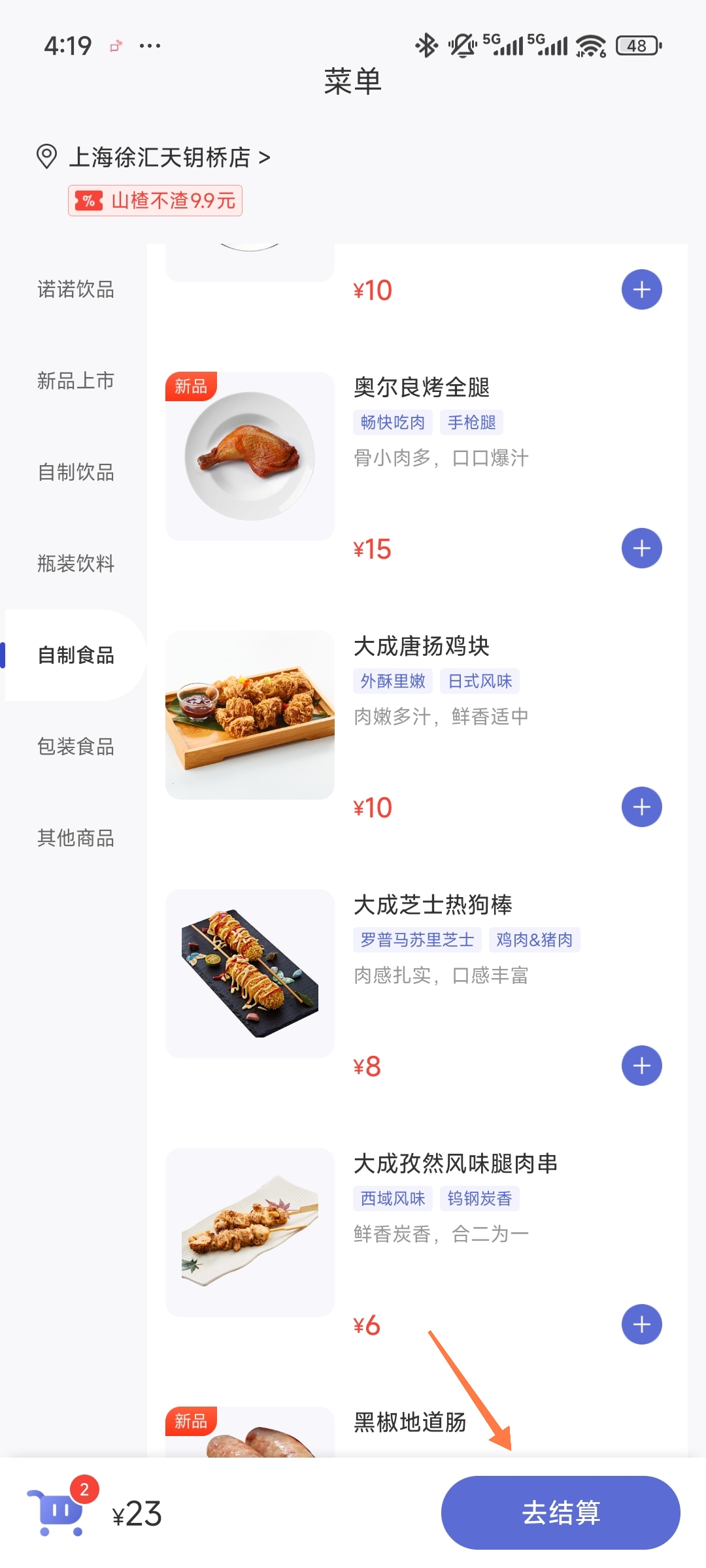 4、搞点你喜欢吃的小炸鸡小辣条啥的点击去结算