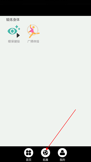 3、点击下方拓展,可以进行眼保健操和 广播 体操运动