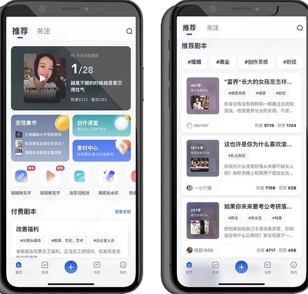 2、同时其中拥有海量精选剧本资源,并采用“智能推荐”机制,根据用户的历史创作,用户喜好,即可将符合账号定位/用户喜欢的高热内容进行推荐。