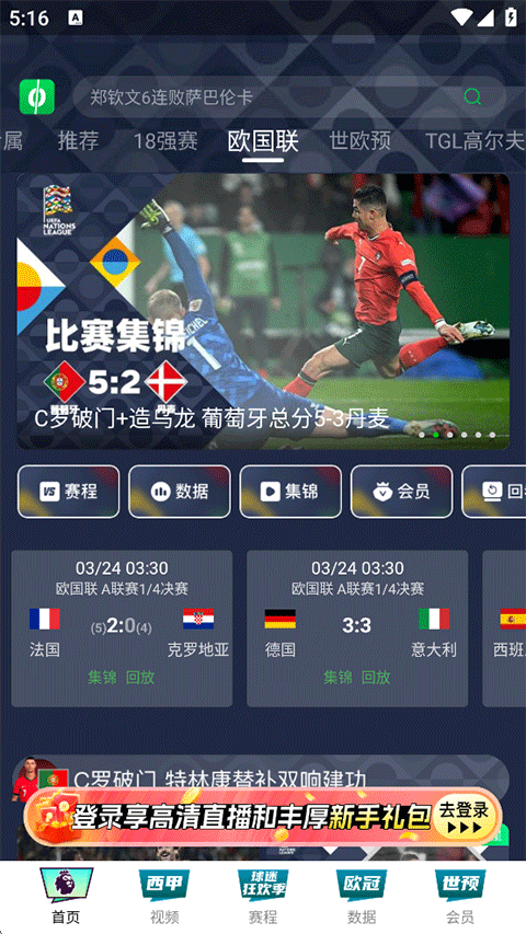 3、海量赛事免费看:欧洲国家联赛、卡拉宝杯、国王杯、英冠等。