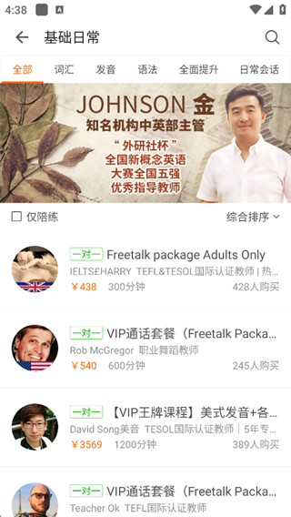 1. 平台认证中外籍口语导师在线陪练,确保真人实时互动。