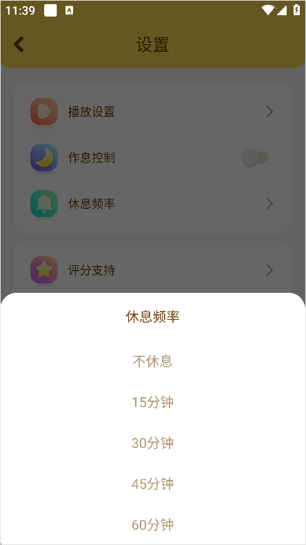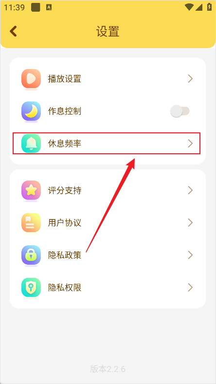 3、进入设置后选择休息频率。