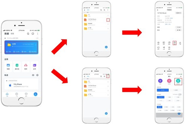 文件「加密」:「加密」功能是可以用户保护重要文件不泄露的功能,加密后的文件不会在文件列表中出现,需进入「隐藏模式」后方可出现,进入「隐藏模式」需验证「安全密钥」。