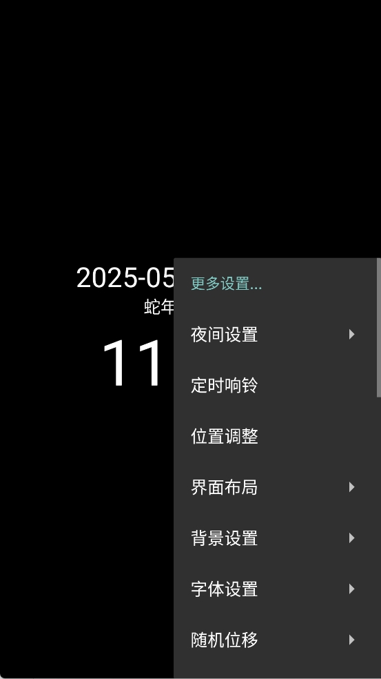 1、启动简黑时钟App,点击时间位置即可弹出菜单。