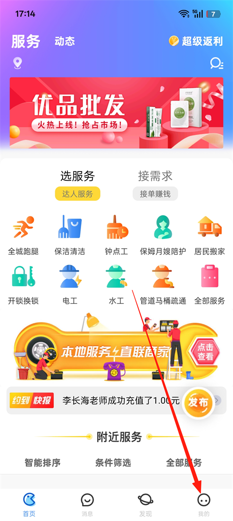 1、平台整合健身占卜等100+类生活服务,用户发布需求后附近服务者实时接单响应。