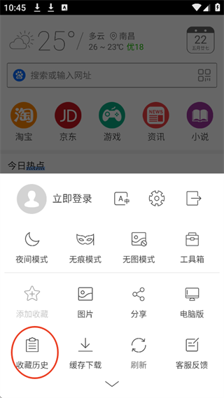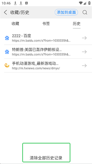 2、点击收藏历史