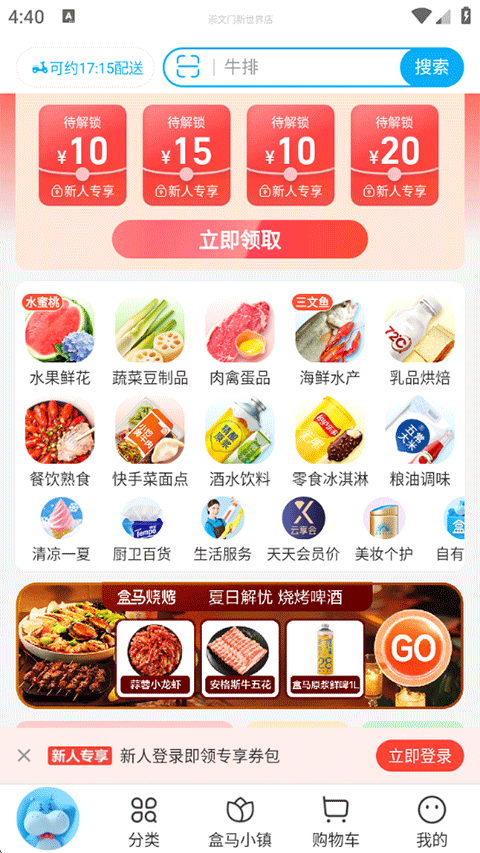 盒马App下载是一款十分不错的生鲜快送超市。这里有海量优质的生鲜商品可供你选购,不论是果蔬、面点、鸡蛋肉禽,还是生活日用户等,都可以满足你不同的生活消费需求,而且商品一经下单,就会在30分钟送达带你手中,让你从此足不出户即可选购到优质的生鲜商品。而且,这款软件里每天都会有各种优惠券可供领取,让你购买生鲜商品实惠又省心,感兴趣的伙伴们就赶紧来下载盒马App下载体验吧。
