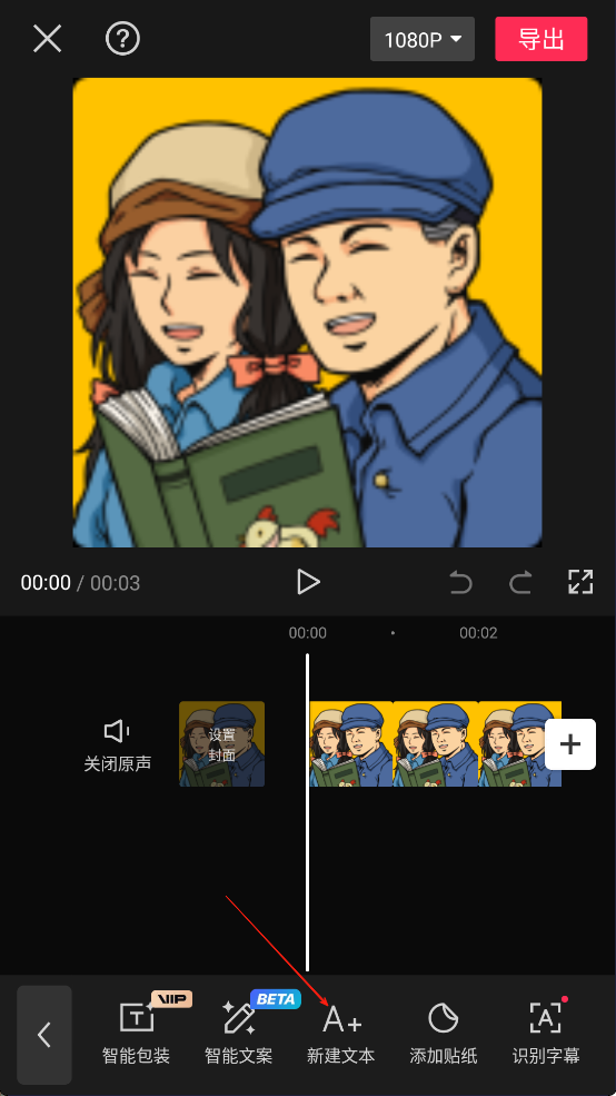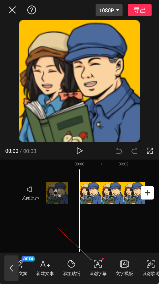 3、在编辑界面点击“文字”,选择“识别字幕”;