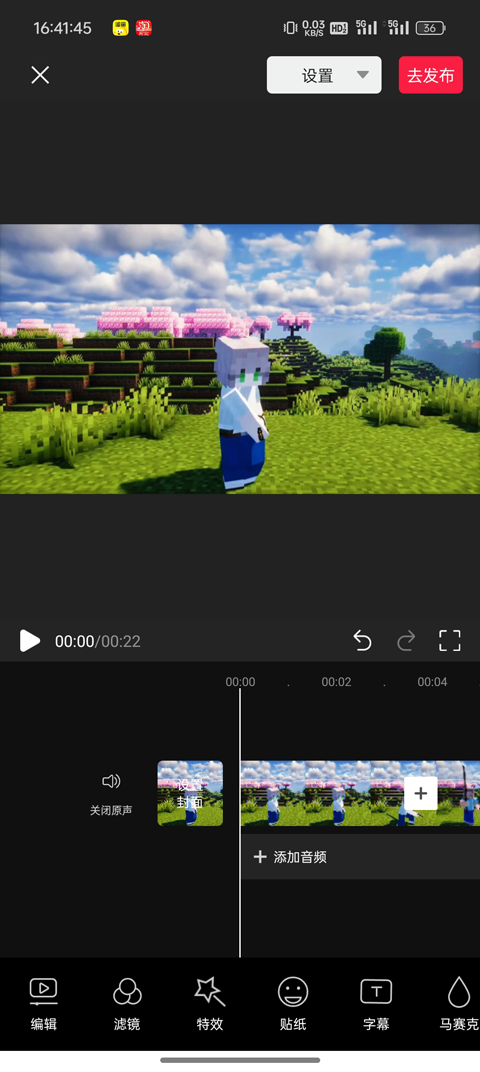 3、视频拍摄完成后,可进行简单剪辑或添加特效,然后点击【去发布】;