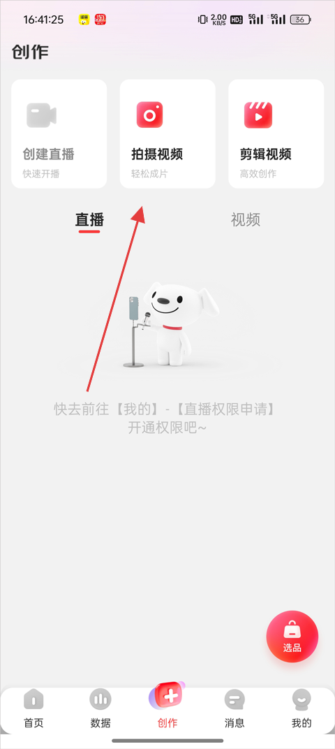 2、选择【拍摄视频】,进入拍摄界面;