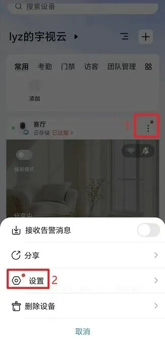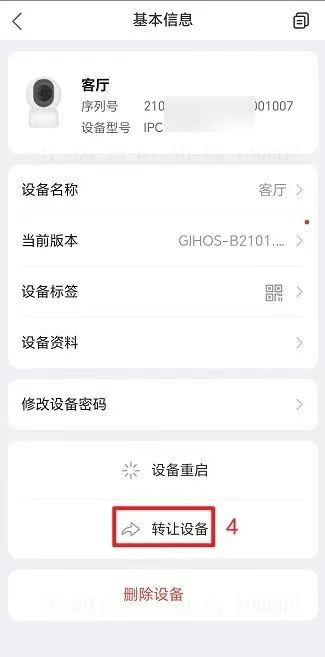 第一步:宇视云APP可将账号中的设备转让给其他人,转让后设备所有的权限即全部转让至该账号。