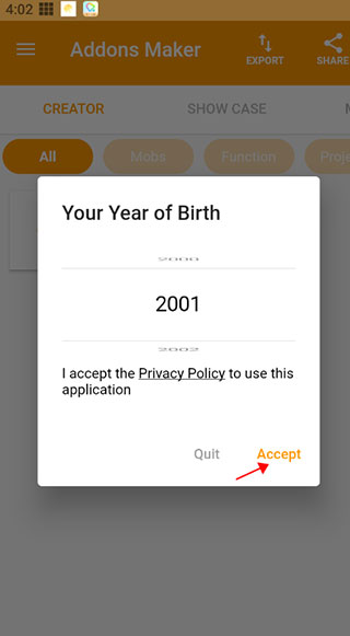 1、打开在本站下载好的软件,选择你的生日并点击接受。